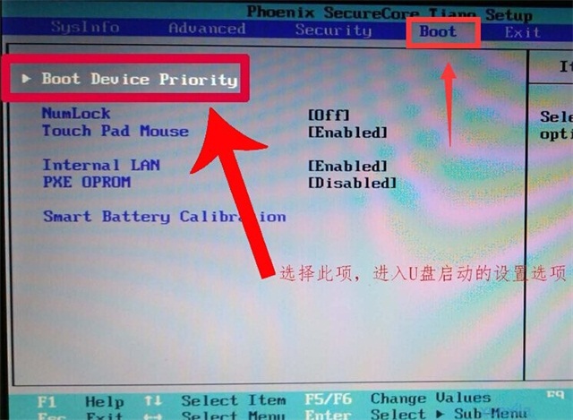 2、切換到BOOT欄目,選擇BOOT DEVICE PRIORITY