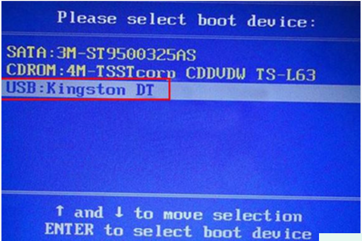 2、選擇U盤選項后回車進(jìn)入下一步,注意:通常帶有“USB”字樣的選項即為U盤選項。
