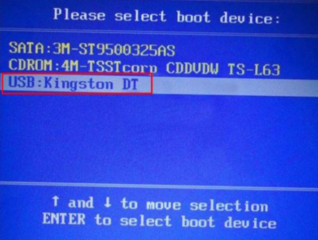 6、將制作好的大白菜啟動u盤插入電腦USB接口,開機或重新啟動,按下U盤啟動快捷鍵進入優(yōu)先啟動項設(shè)置界,選擇U盤選項(一般為帶USB的選項),按Enter鍵進入;