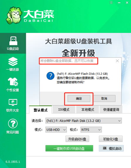 軟件版本:大白菜超級u盤裝機工具6.0.1809.18