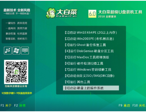 3.進(jìn)入到大白菜pe系統(tǒng)后,我們選擇【1】進(jìn)入。