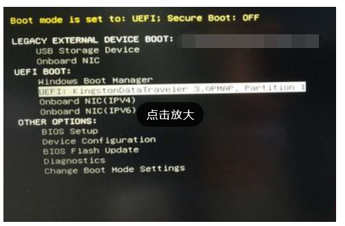 2、在需要重裝系統(tǒng)的戴爾筆記本電腦上插入pe啟動盤,重啟后不停按F12啟動快捷鍵,調(diào)出啟動菜單對話框,選擇識別到的U盤選項,一般是U盤名稱或者帶有USB字樣的,比如KingstonData,新機型裝win10系統(tǒng)需要uefi模式下安裝,選擇帶UEFI模式的項,按回車鍵進入;
