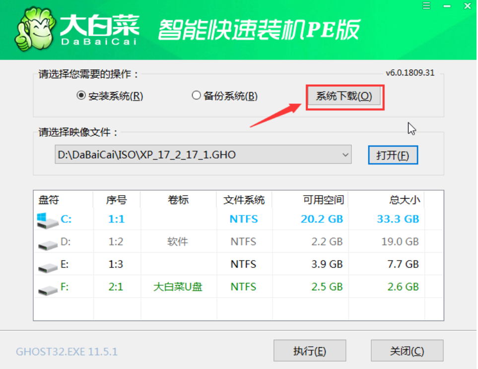 軟件版本:大白菜