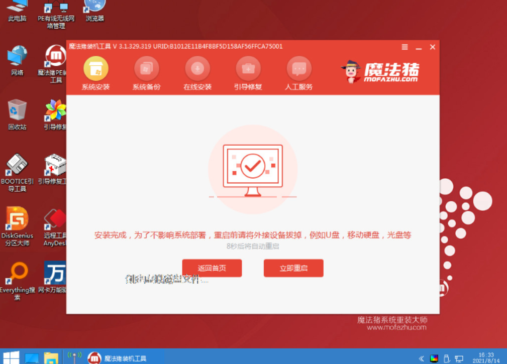 5、等待安裝完成后,選擇立即重啟電腦。