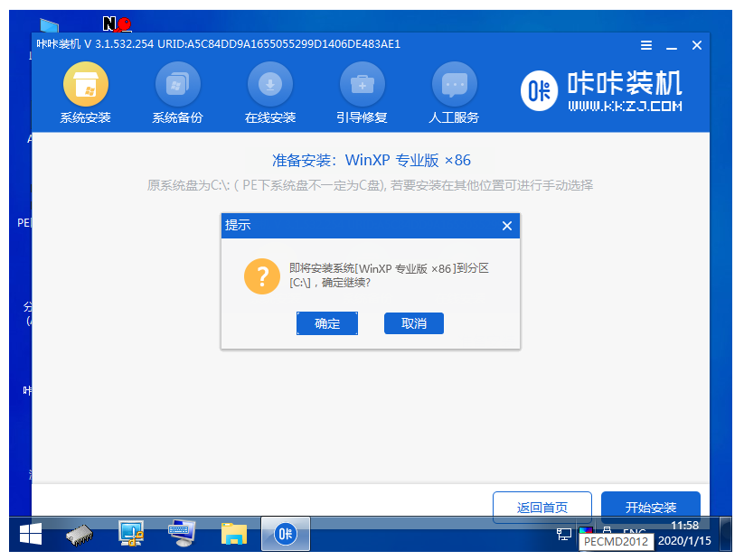 軟件版本:咔咔裝機(jī)1.0.0.1001.