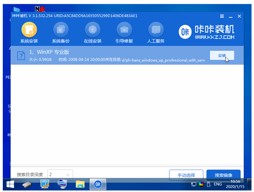 7、進(jìn)入pe系統(tǒng)界面后,選擇需要安裝的xp系統(tǒng),點(diǎn)擊安裝。
