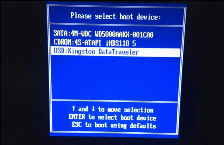 步驟四:我們將u盤啟動盤插入電腦中,開機(jī)不停按啟動快捷鍵進(jìn)啟動頁面,選擇u盤啟動項回車確定進(jìn)入到pe選擇頁面,選擇第一項pe系統(tǒng)回車進(jìn)入。
