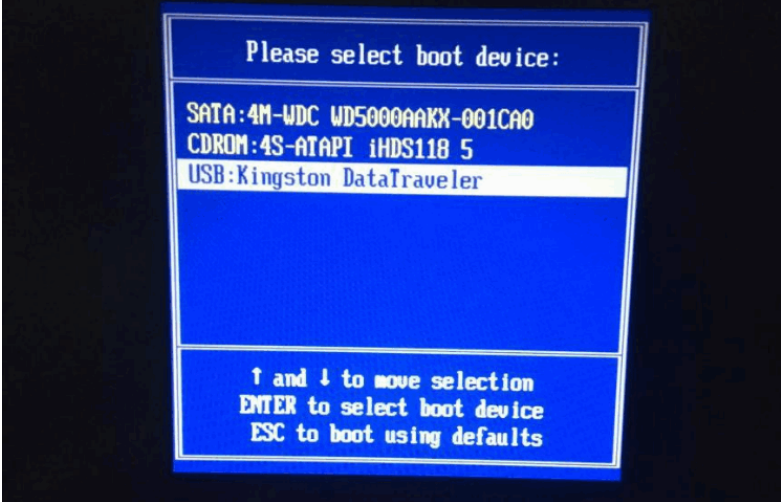 4、插入啟動盤到電腦中,開機(jī)不停按啟動熱鍵進(jìn)啟動頁面,選擇u盤啟動項回車確定進(jìn)入到pe選擇界面,選擇第一項pe系統(tǒng)回車進(jìn)入。