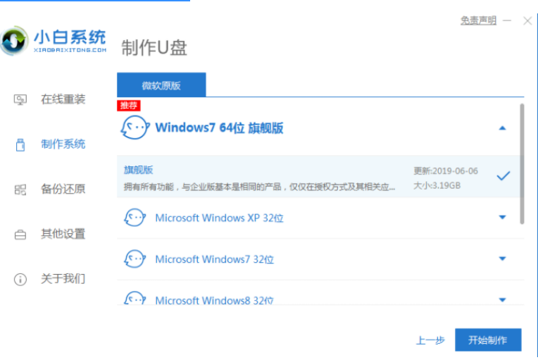 2.選擇自己想要的系統(tǒng),點擊開始制作。