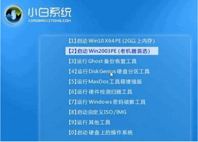 4、電腦重啟過(guò)程中選擇U盤(pán)啟動(dòng),在進(jìn)入小白系統(tǒng)pe時(shí),選擇第一項(xiàng)“啟動(dòng)win10 x64PE(2G以上內(nèi)存進(jìn)入)”進(jìn)入電腦系統(tǒng)即可。