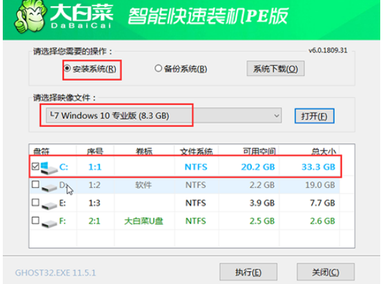 大白菜超級U盤裝機工具重裝win7: