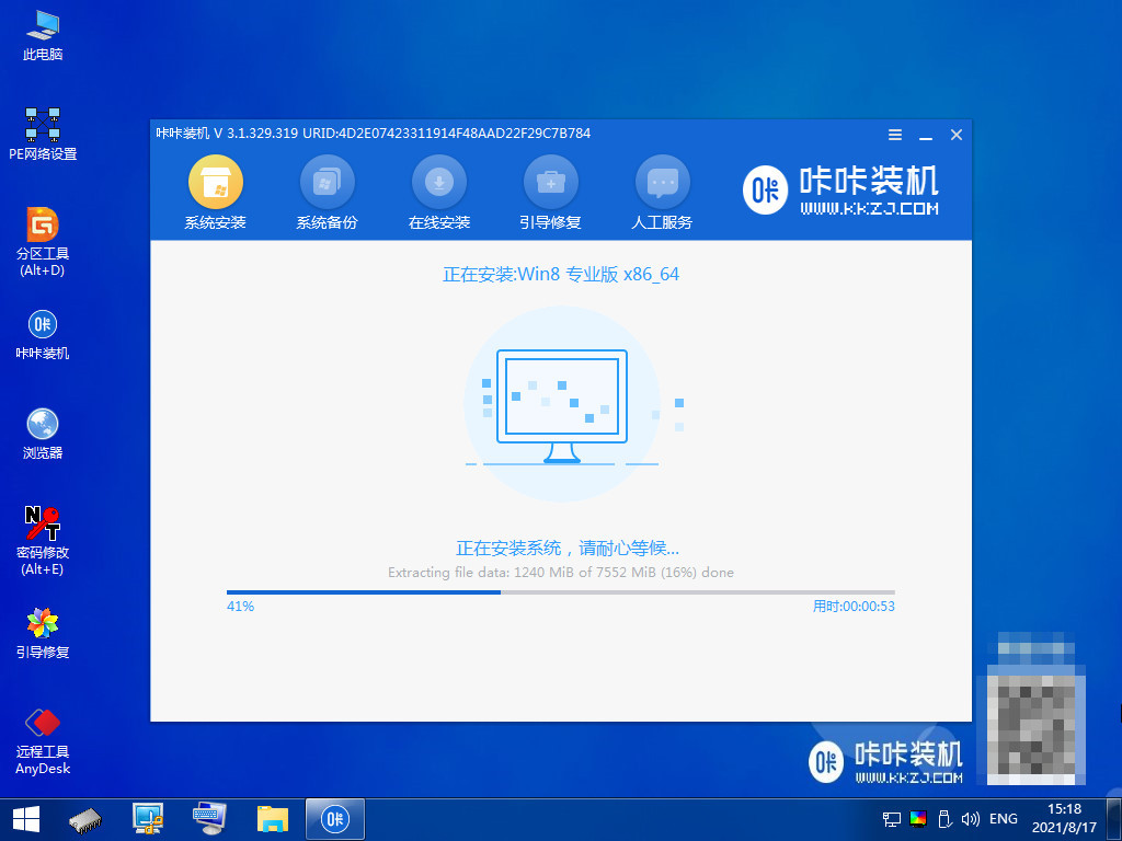 下載咔咔裝機(jī)軟件進(jìn)行u盤裝系統(tǒng)win8: