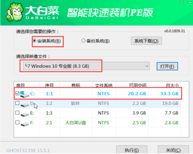軟件版本:大白菜超級U盤裝機(jī)工具