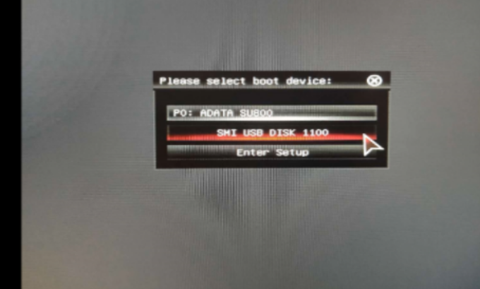 5、隨后將u盤啟動盤插入到需要重裝的電腦,出現(xiàn)開機(jī)界面后不斷按下U盤啟動快捷鍵,進(jìn)入系統(tǒng)啟動菜單后,設(shè)置u盤為第一啟動項(xiàng)。