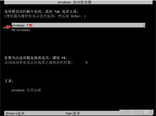 7、安裝完成后,我們重啟電腦,進入到選擇系統(tǒng)的頁面選擇 Windows 7 進入。