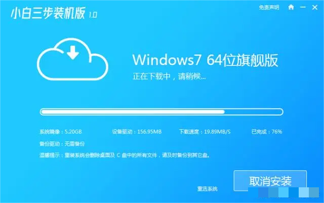 1、我們到小白系統(tǒng)官網(wǎng)下載安裝小白三步裝機版軟件并打開,在主頁面中選擇win7旗艦版系統(tǒng)安裝。