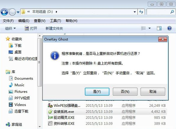 4、彈出提示框,程序準備就緒,直接點擊是,立即重啟進行計算機還原。