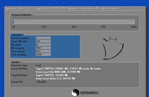 5、這時電腦就會自動重啟,進入ghost系統(tǒng)環(huán)境,我們可以通過進度條看到系統(tǒng)還原的進度。