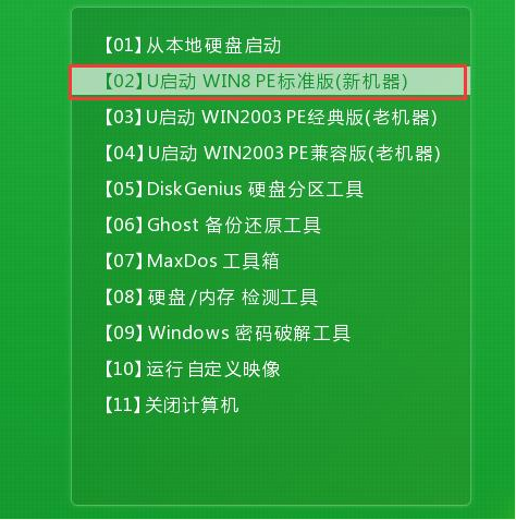 5、把啟動盤插入需要重裝的電腦,重啟該電腦,在出現(xiàn)開機(jī)畫面時(shí)通過u盤啟動快捷鍵進(jìn)入u啟動主菜單界面,選擇【02】按下回車鍵。