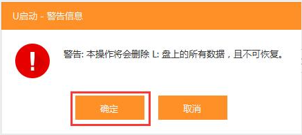 2、此時(shí)會清空U盤上的數(shù)據(jù),請做好備份工作。