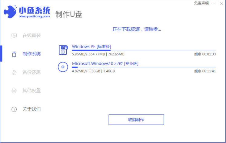 1、打開小魚一鍵重裝系統(tǒng)軟件,選擇制作U盤開始制作;