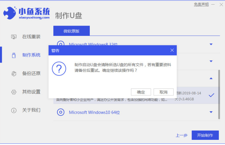 2、制作啟動(dòng)盤前需要確定已備份好U盤內(nèi)的文件資料,點(diǎn)擊確定。
