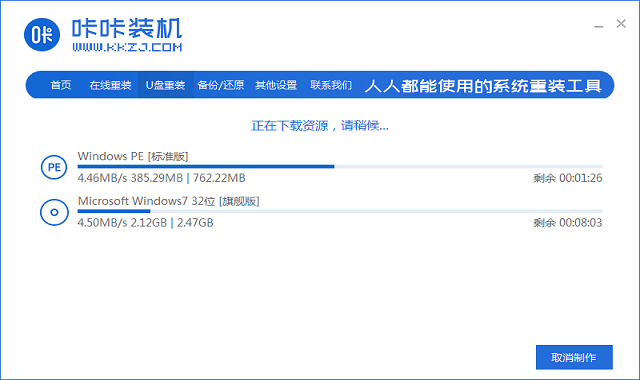 利用電腦下載咔咔裝機(jī)軟件,然后插入u盤并打開咔咔裝機(jī)軟件,利用軟件里面的u盤重裝進(jìn)行系統(tǒng)制作。