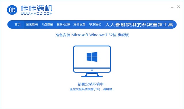 下載咔咔一鍵裝機(jī),利用軟件里面的在線重裝就可以進(jìn)行系統(tǒng)的重裝了。