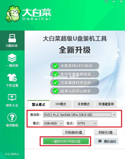 大白菜超級(jí)U盤(pán)啟動(dòng)盤(pán)制作工具擁有大量的用戶(hù)群,主要賣(mài)點(diǎn)在于綠色免費(fèi)中文版,以及啟動(dòng)U盤(pán)制作的高成功率,啟動(dòng)U盤(pán)制作速度相比更加快速。其PE系統(tǒng)安裝后擁有極速啟動(dòng)功能,而且擁有萬(wàn)能U盤(pán)的啟動(dòng)文件功能。大白菜的特色功能有自定義啟動(dòng)u盤(pán)裝系統(tǒng)加載功能和U盤(pán)啟動(dòng)區(qū)自動(dòng)隱藏功能,體現(xiàn)了顧客的個(gè)性和安全性。