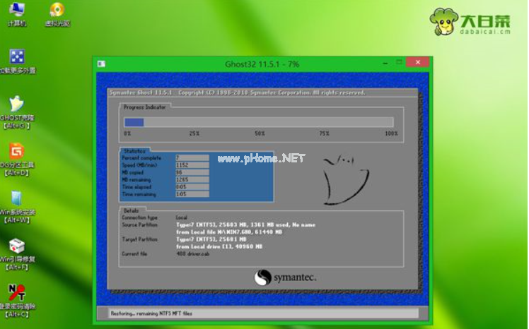 9、進(jìn)入到這個界面,執(zhí)行系統(tǒng)還原到C盤的操作,這個過程大概需要5分鐘左右;