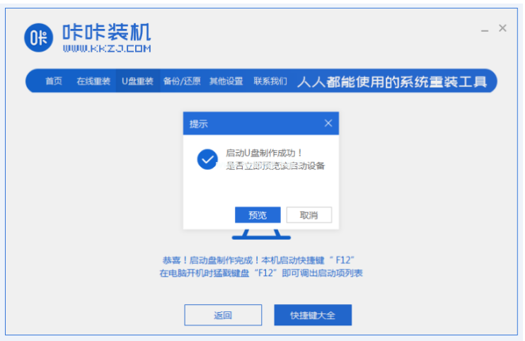 6、下載完成后,點(diǎn)擊預(yù)覽制作好的u盤啟動盤。