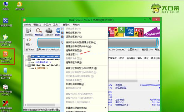 4、進(jìn)入到pe系統(tǒng)之后,如果是需要重新分區(qū),需要備份所有數(shù)據(jù),鼠標(biāo)雙擊打開【DG分區(qū)工具】,鼠標(biāo)右鍵點(diǎn)擊硬盤,選擇【快速分區(qū)】;