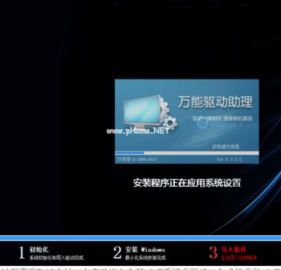 10、進(jìn)度條達(dá)到100%后將會自動重啟電腦,拔掉U盤,重新啟動進(jìn)入這個界面,繼續(xù)進(jìn)行系統(tǒng)重裝以及配置過程;
