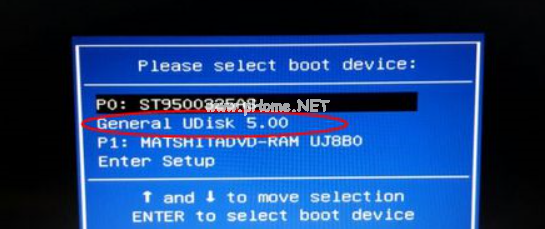 2、在需要重裝系統(tǒng)的電腦接口上插入U盤,重啟電腦后不停按F12、F11、Esc等等快捷鍵打開啟動菜單界面,選擇U盤選項回車,比如General UDisk 5.00,不支持這些啟動鍵的臺式電腦的話請查看第二點(diǎn)設(shè)置U盤啟動方法;
