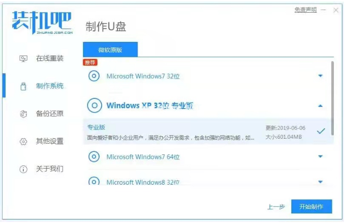 2、選擇我們需要安裝的系統(tǒng),點擊開始制作。