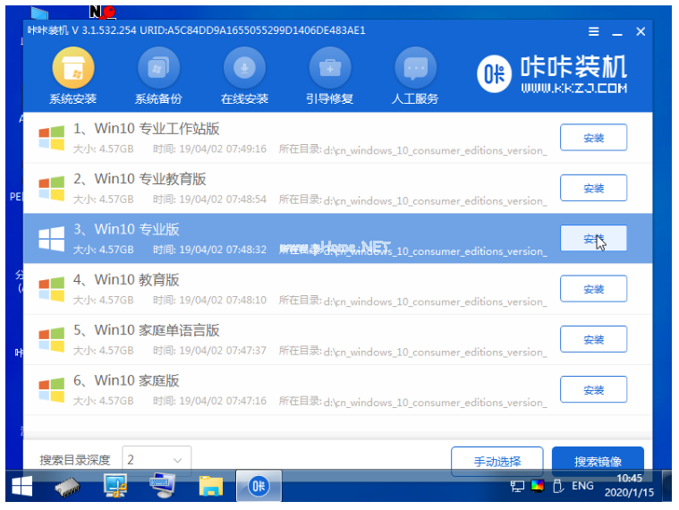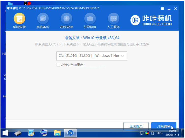 3、再次打開咔咔裝機工具安裝win10系統(tǒng);