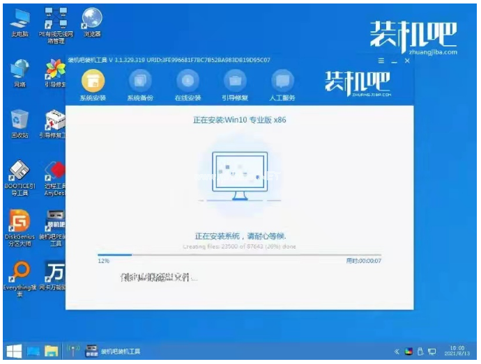 5、在pe系統(tǒng)桌面點擊打開裝機吧裝機工具,選擇我們需要安裝的系統(tǒng)點擊安裝到電腦c盤上。