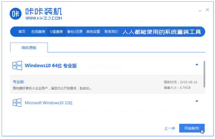 2、選擇需要的安裝的win10系統(tǒng),點擊開始制作。