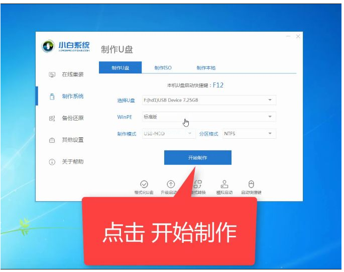 1、插入U盤到電腦上,打開軟件之后,點擊【制作系統(tǒng)】,確認(rèn)U盤無誤,鼠標(biāo)點擊【開始制作】。