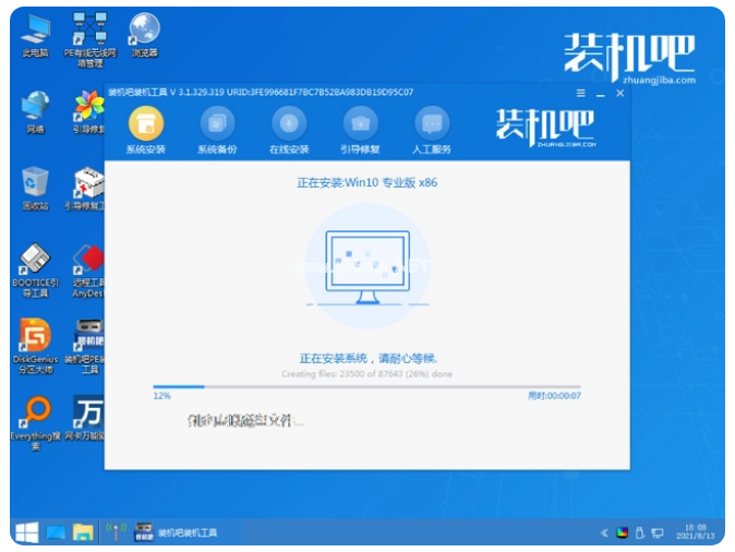 5、在pe系統(tǒng)桌面點擊打開裝機吧裝機工具,選擇我們需要安裝的win10系統(tǒng)點擊安裝到電腦c盤上。