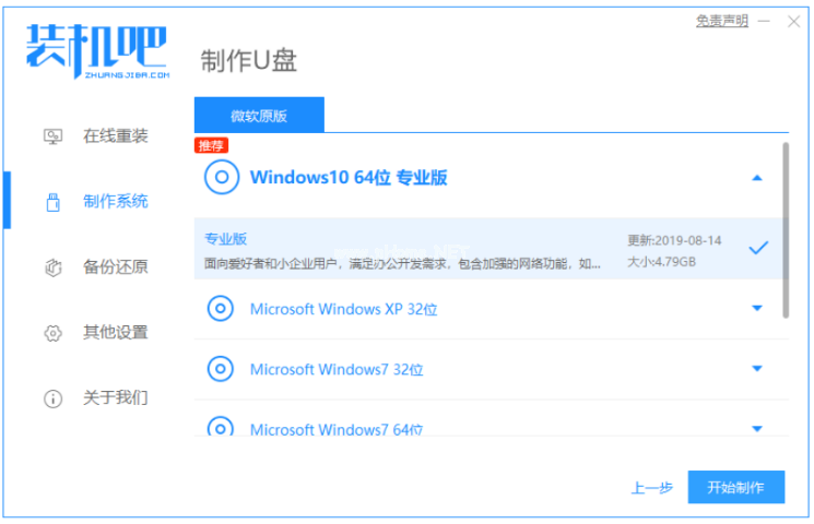 2、選擇我們需要安裝的系統(tǒng),點(diǎn)擊開始制作。