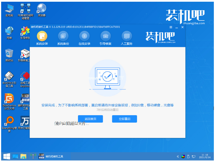 6.系統(tǒng)安裝完成后,再次點(diǎn)擊“立即重啟”選項(xiàng)。
