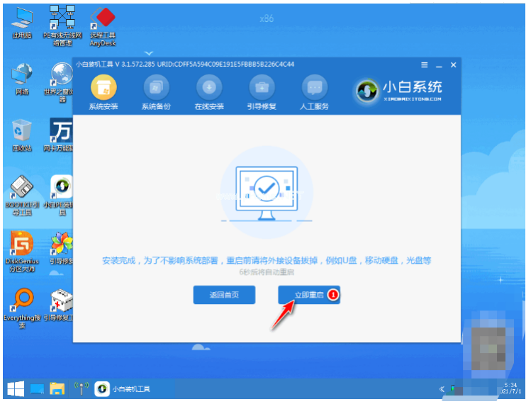 6、系統(tǒng)安裝完成之后,再次點(diǎn)擊立即重啟電腦按鈕。