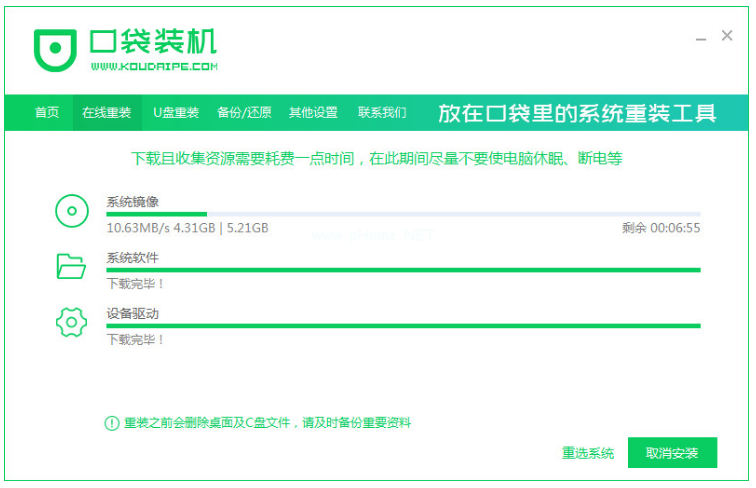 方法二:利用口袋裝機(jī)軟件重裝三星電腦win10系統(tǒng)