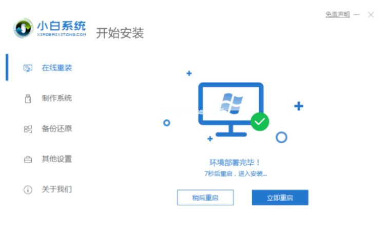 3、環(huán)境部署完畢之后,點(diǎn)擊立即重啟電腦按鈕。