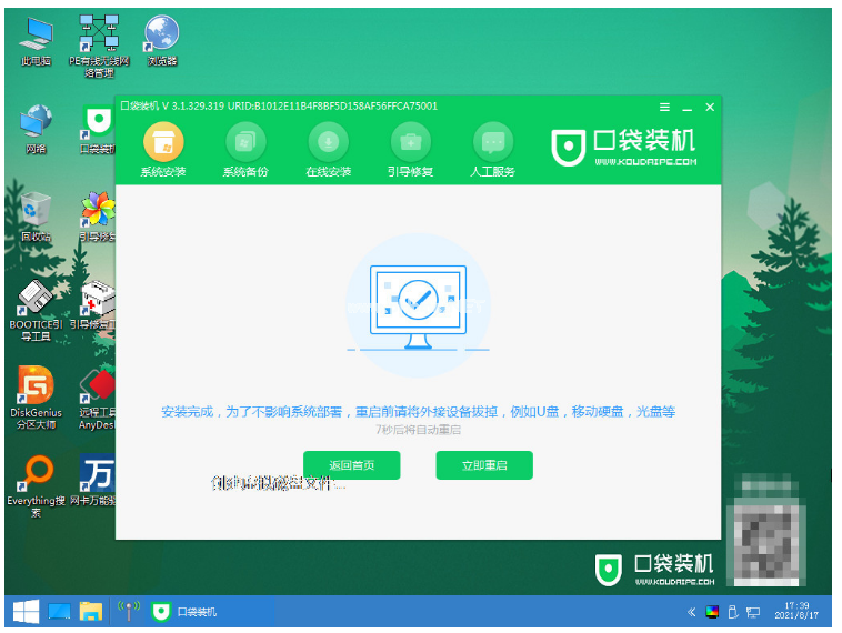 3、系統(tǒng)安裝完成后再次重啟電腦;