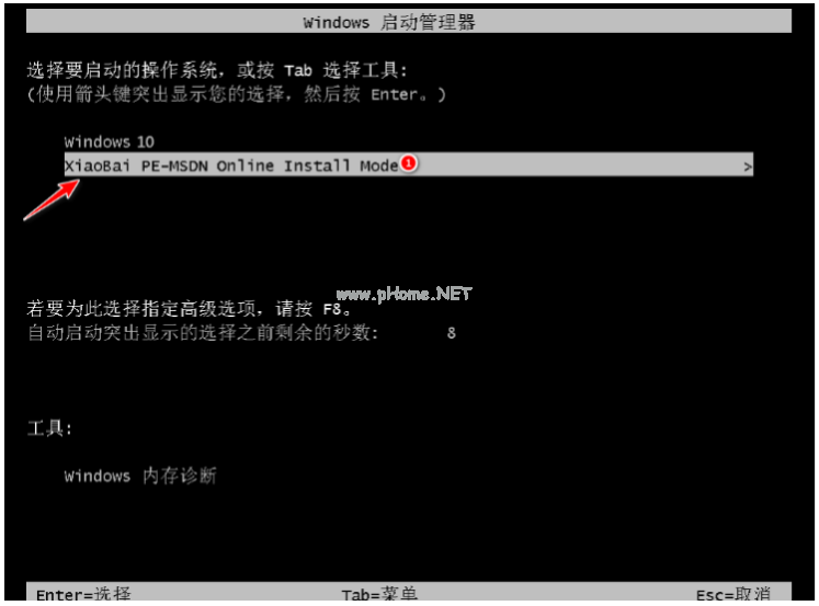 7、來到這個(gè)界面我們選擇新安裝好的windows10系統(tǒng),直至進(jìn)入win10系統(tǒng)即可。