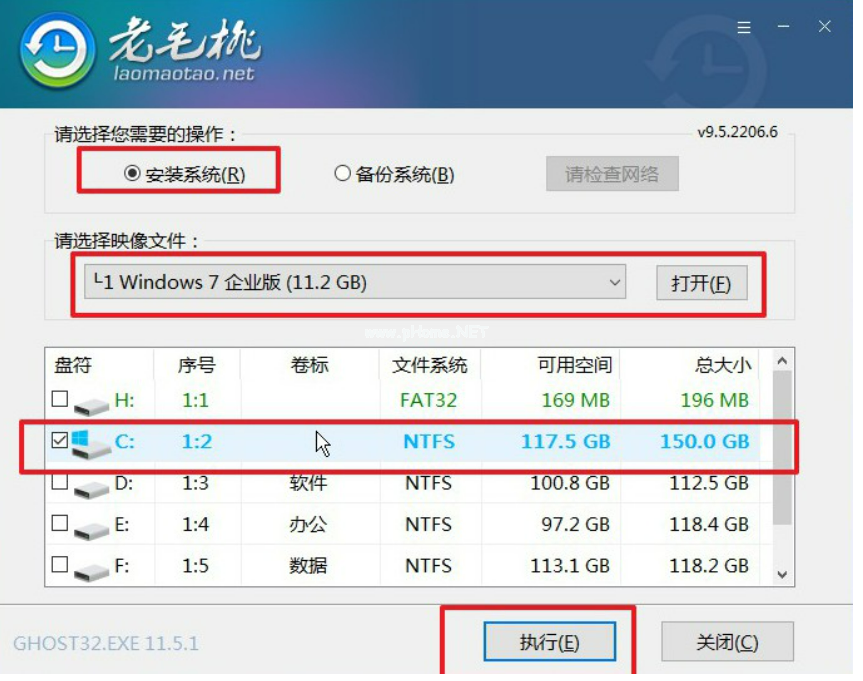 3、打開(kāi)一鍵裝機(jī)工具,一般情況下會(huì)自動(dòng)檢測(cè)win7鏡 像,選擇安裝c盤,點(diǎn)擊執(zhí)行。