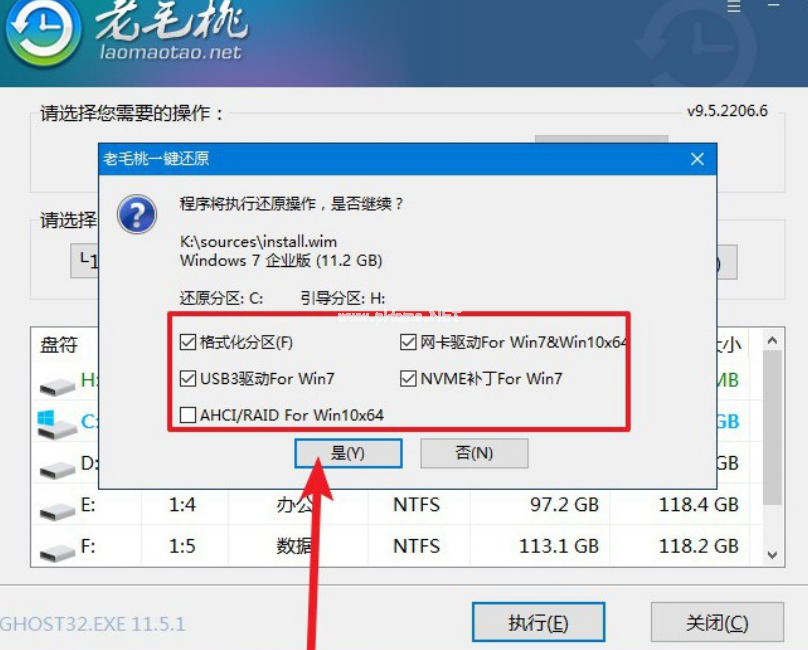 4、彈出還原窗口的時(shí)候,只需默認(rèn)設(shè)置,點(diǎn)擊是。