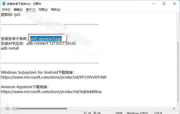2、鼠標(biāo)點(diǎn)擊打開(kāi)電腦記事本文檔,復(fù)制add-appxpackage到其中。